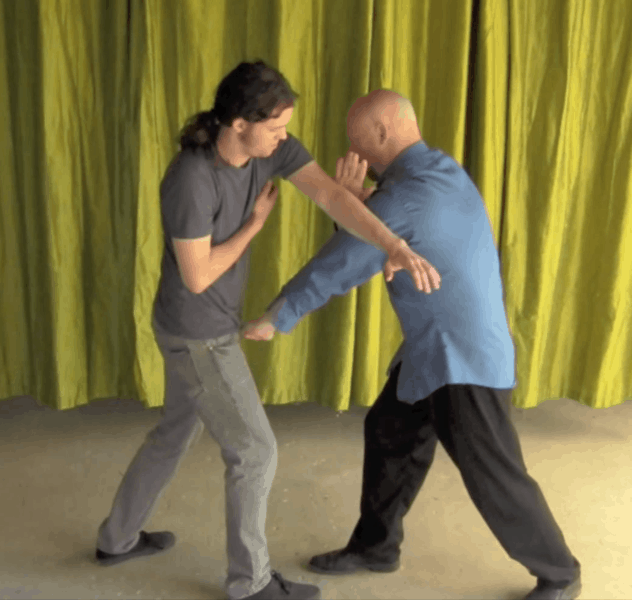 1 – To contour the attacking limb from first touch to the attacker’s torso. From the moment the practitioner makes contact with the attacker’s body—for example, when blocking an attacking arm—he should remain in contact, following the contour of the attacker’s body until he reaches the torso.